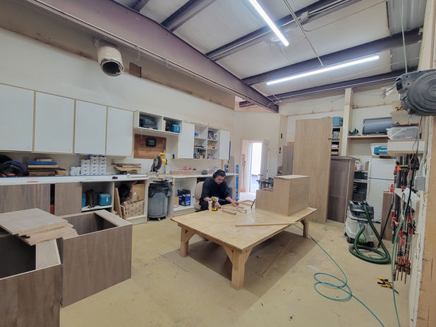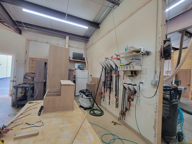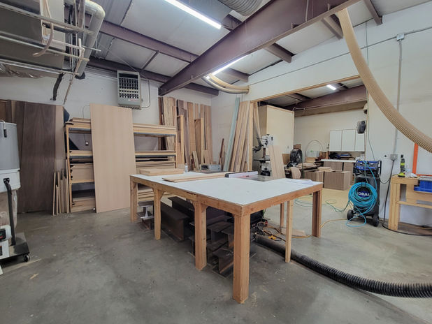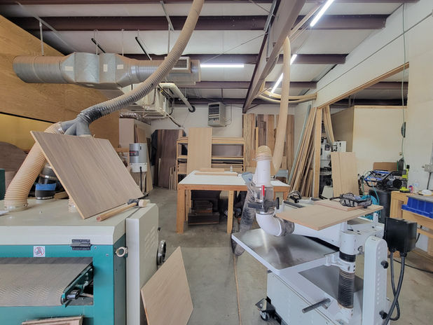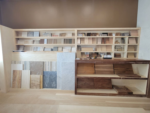 Our showroom offers a warm, inviting space where clients can explore an extensive selection of woods, stone, and finishes while envisioning their project come to life. Just steps away, our fully equipped woodshop is where design meets craftsmanship—every piece is carefully built, refined, and finished by hand. Together, the showroom and woodshop reflect our commitment to quality, creativity, and precision in every project.